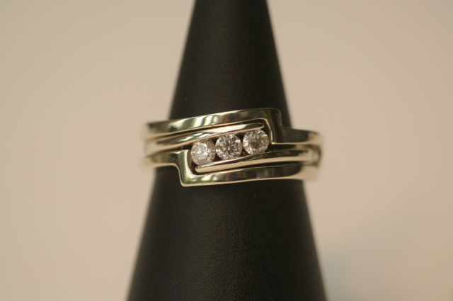 I have been asked on many occasions to design a wedding ring that will fit around an unusual engagement ring. Here a two examples :
